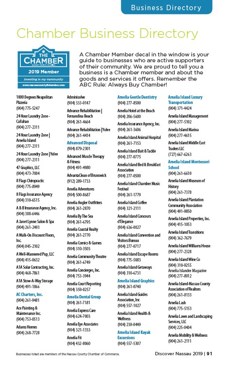 Businesses listed are members of the Nassau County Chamber of Commerce. Discover Nassau 2019 | 9 1