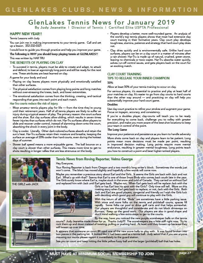 GlenLakes Tennis News for January 2019