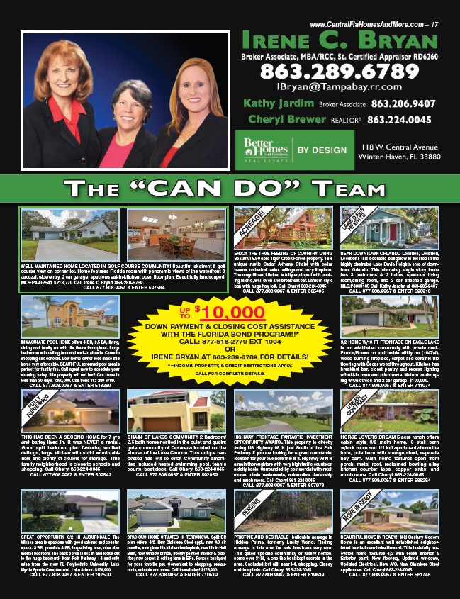 IRENE BRYAN AT 863-289-6789 FOR DETAILS!