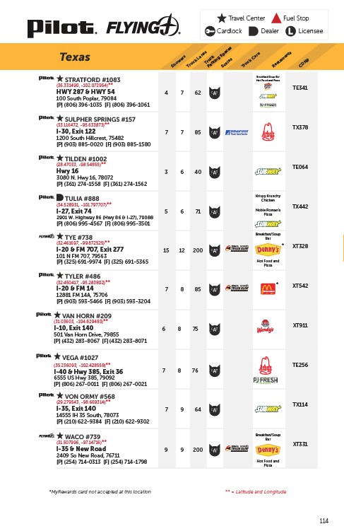 *MyRewards card not accepted at this location ** = Latitude and Longitude