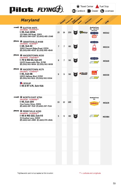 *MyRewards card not accepted at this location ** = Latitude and Longitude
