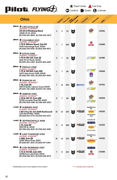 *MyRewards card not accepted at this location ** = Latitude and Longitude
