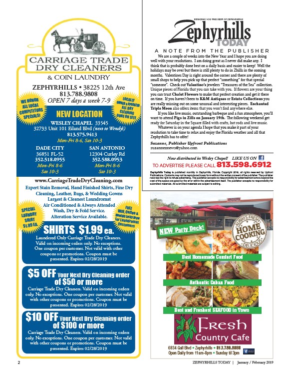 Zephyrhills Today is published monthly in Zephyrhills, Florida. Copyright 2019, all rights reserved by Upfront