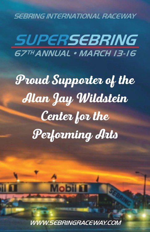 SEBRING INTERNATIONAL RACEWAY SUPERSEBRING 67TH ANNUAL • MARCH 13-16 Proud Supporter of the Alan Jay Wildstein Center for the Performing Arts WWW.SEBRINGRACEWAY.COM