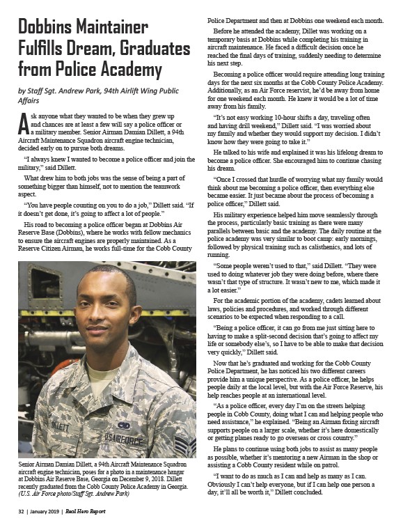at Dobbins Air Reserve Base, Georgia on December 9, 2018. Dillett