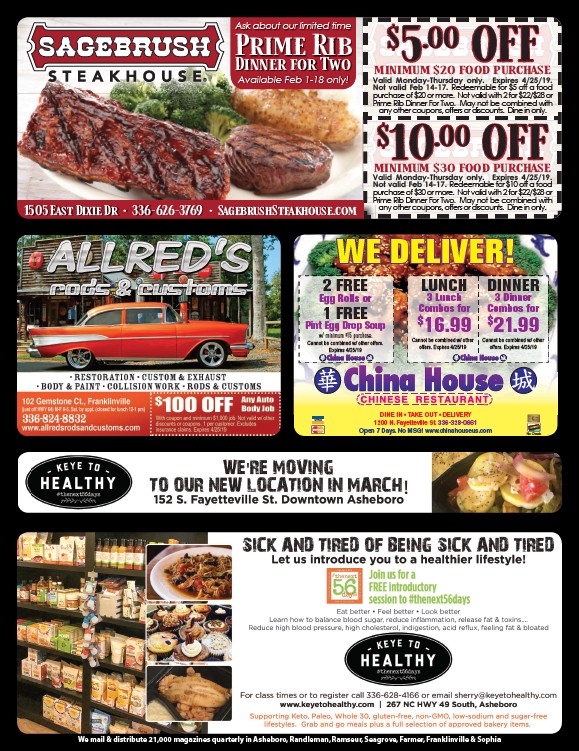 We mail & distribute 21,000 magazines quarterly in Asheboro, Randleman, Ramseur, Seagrove, Farmer, Franklinville & Sophia
