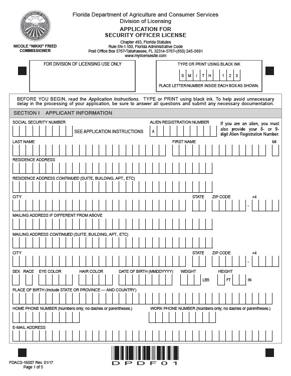 SECURITY OFFICER LICENSE