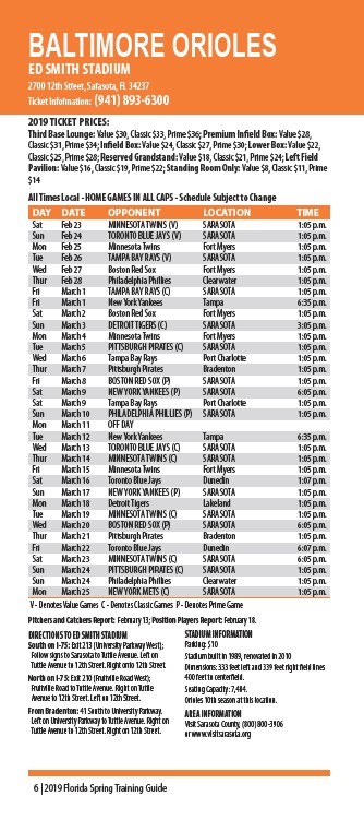 Sun March 24 PITTSBURGH PIRATES (C) SARASOTA 1:05 p.m.