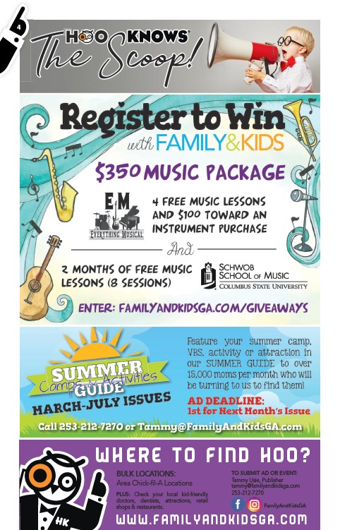 44 The Scoop! Where to Find HOO? BULK LOCATIONS: TO SUBMIT AD OR EVENT: 253-212-7270 PLUS: FamilyAndKidsGA www.Familyandkidsga.com 4444