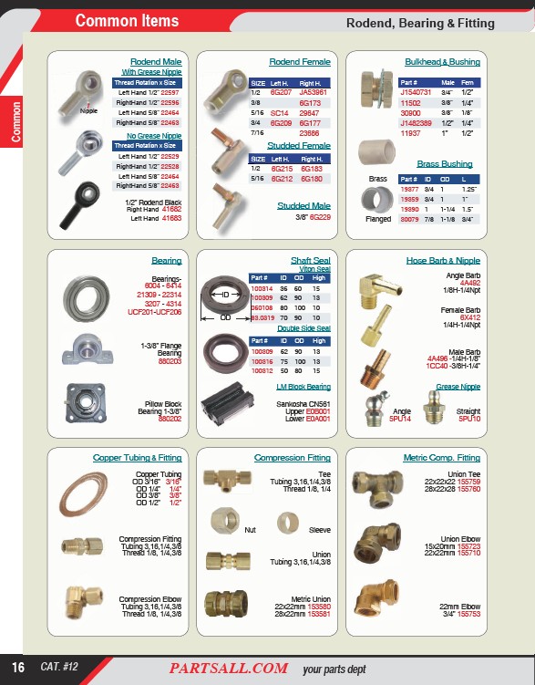 16CAT. #12 PARTSALL.COM your parts dept Bearing Shaft Seal Hose Barb & Nipple