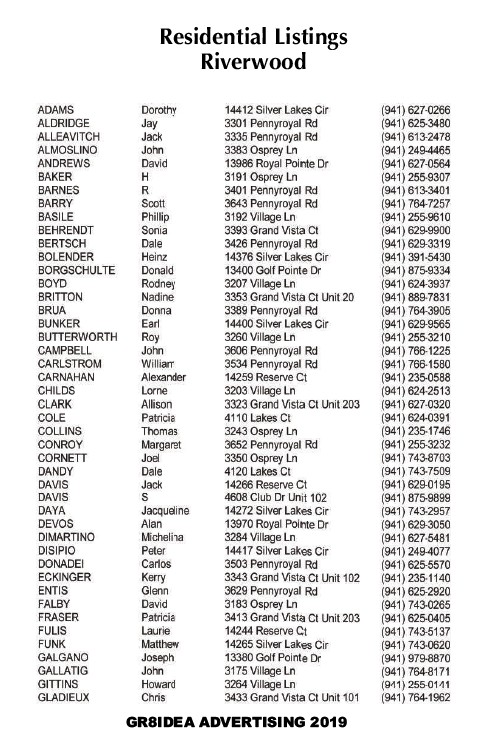 Residential Listings Riverwood GR8IDEA ADVERTISING 2019