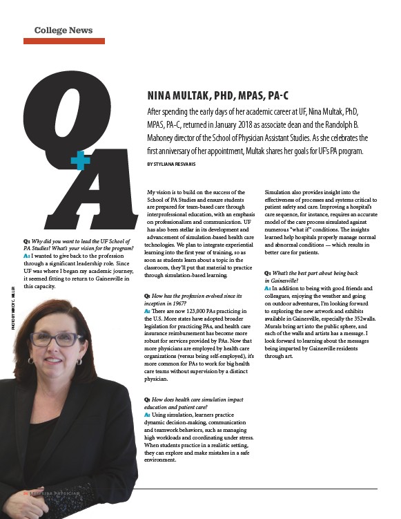 first anniversary of her appointment, Multak shares her goals for UF’s PA program.