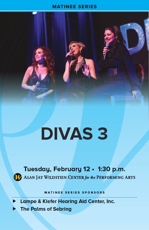 MATINEE SERIES DIVAS 3 ALAN JAY WILDSTEIN CENTER for the PERFORMING ARTS M AT I N E E S E R I E S S P O N S O R S Lampe & Kiefer Hearing Aid Center, Inc. The Palms of Sebring