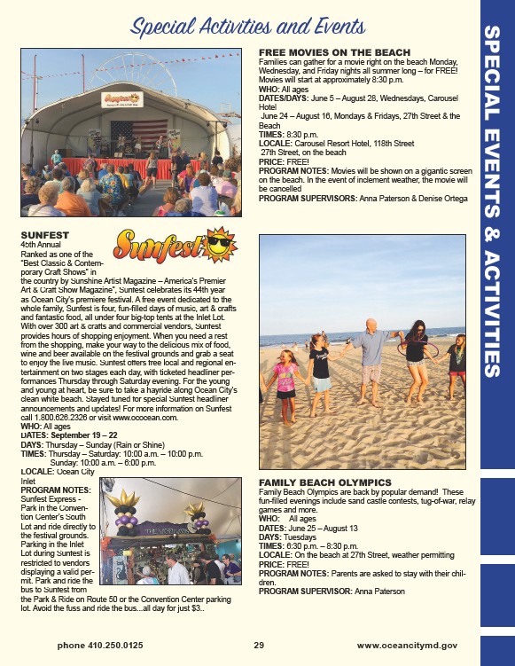fun-lled evenings include sand castle contests, tug-of-war, relay