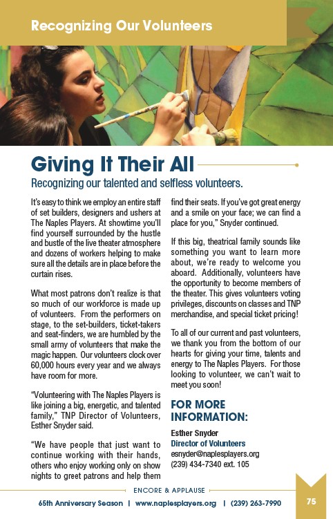 65th Anniversary Season | www.naplesplayers.org | (239) 263-7990 75