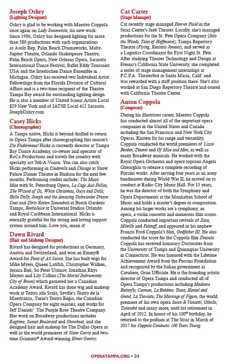 the Woods, Tales of Hoffmann); Tampa Repertory