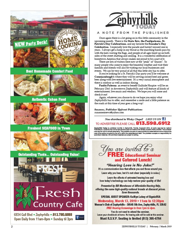 Zephyrhills Today is published monthly in Zephyrhills, Florida. Copyright 2019, all rights reserved by Upfront