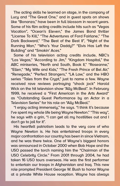 I’ve spent my whole life being Wayne Newton.” “This way”,