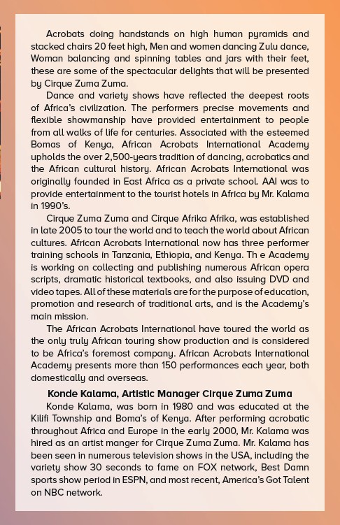 the African cultural history. African Acrobats International was