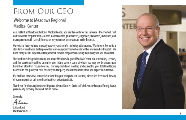 Thank you for choosing Meadows Regional Medical Center. On behalf of the entire hospital family, I wish