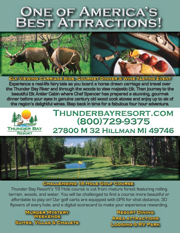 the Thunder Bay River and through the woods to view majestic Elk. Then journey to the