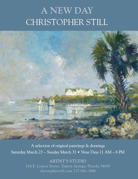A NEW DAY CHRISTOPHER STILL A selection of original paintings & drawings Saturday March 23 – Sunday March 31 • Nine Days 11 AM – 6 PM ARTIST’S STUDIO 324 E. Lemon Street, Tarpon Springs, Florida 34689 christopherstill.com 727-942-1846