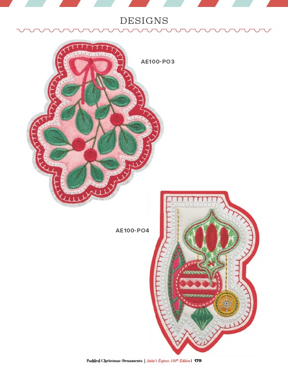 DESIGNS AE100-PO3 AE100-PO4 PO Padded Christmas Ornaments | Anita's Express 100th Edition | 179