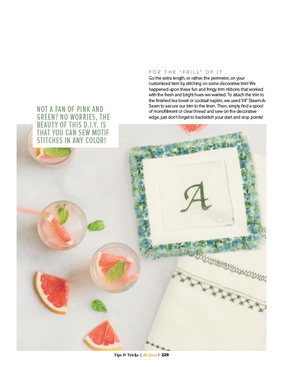 the finished tea towel or cocktail napkin, we used 1/4” Steam-ASeam