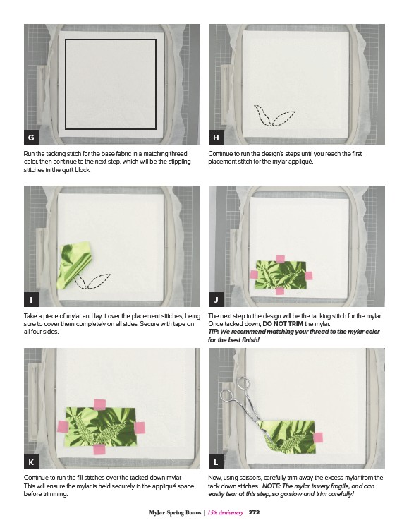 tack down stitches. NOTE: The mylar is very fragile, and can