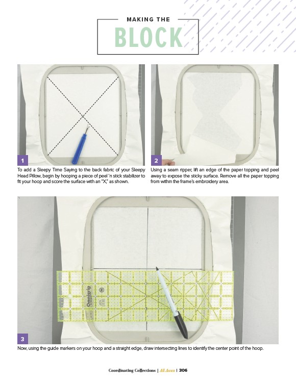 Head Pillow, begin by hooping a piece of peel ‘n stick stabilizer to