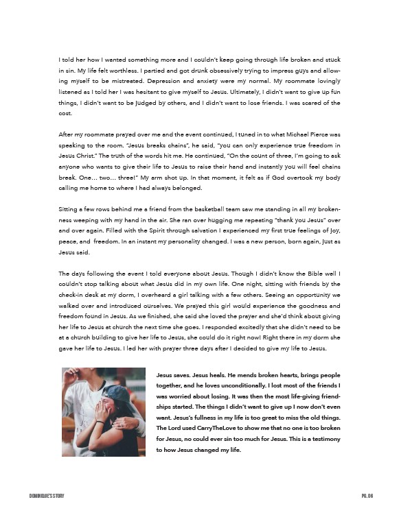 in sin. My life felt worthless. I partied and got drunk obsessively trying to impress guys and allowing