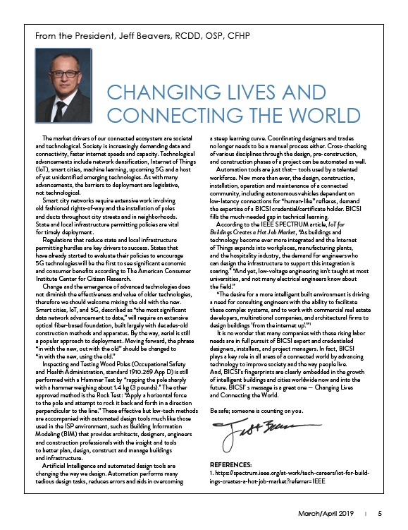 From the President, Jeff Beavers, RCDD, OSP, CFHP