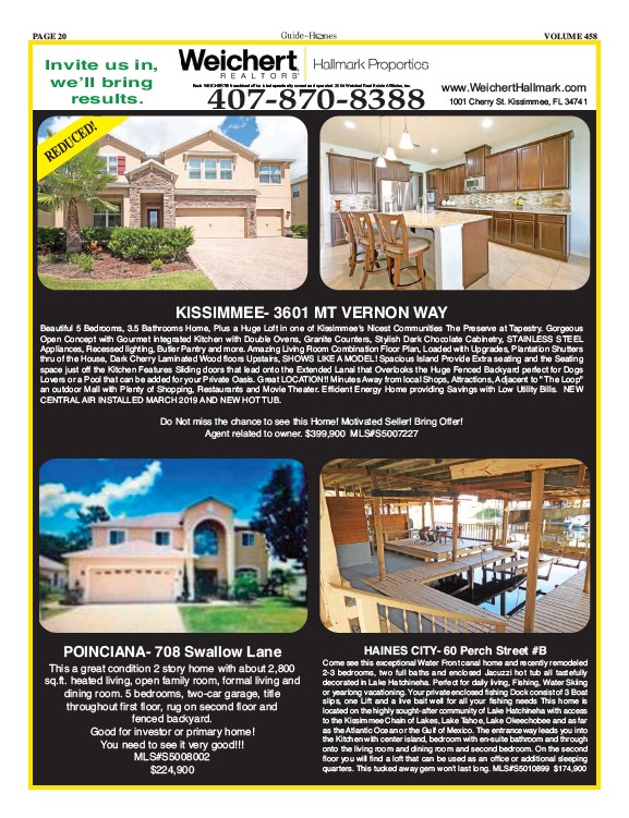 results. 1001 Cherry St. Kissimmee, FL 34741 Each WEICHERT® franchised office is independently owned and operated. 2004 Weichert Real Estate Affiliates, Inc.