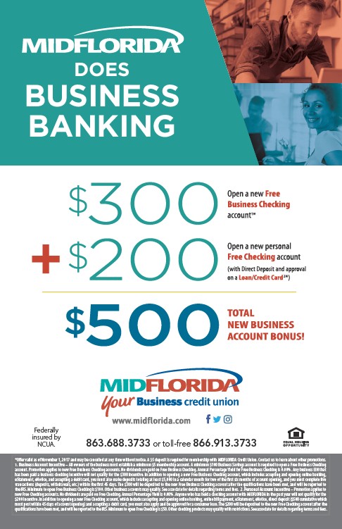 *Offer valid as of November 1, 2017 and may be cancelled at any time without notice. A $5 deposit is required for membership with MIDFLORIDA Credit Union. Contact us to learn about other promotions.