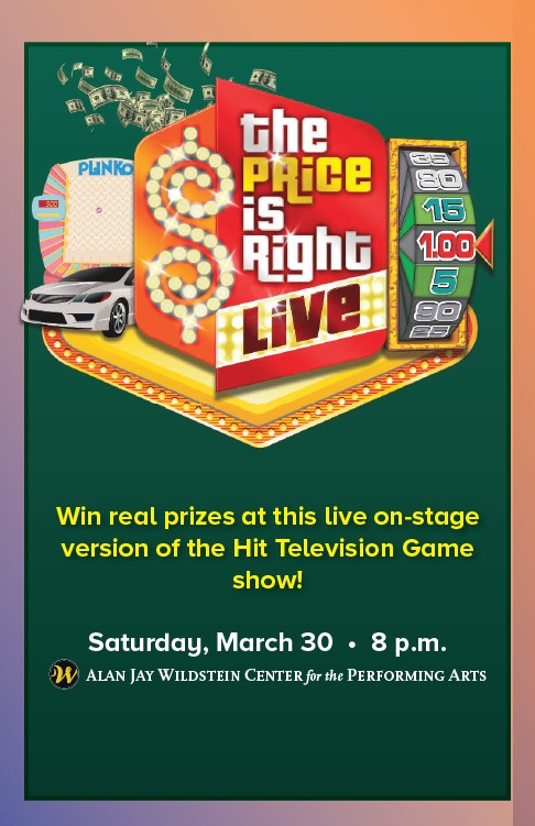 Win real prizes at this live on-stage version of the Hit Television Game show! Saturday, 8 p.m. ALAN JAY WILDSTEIN CENTER for the PERFORMING ARTS