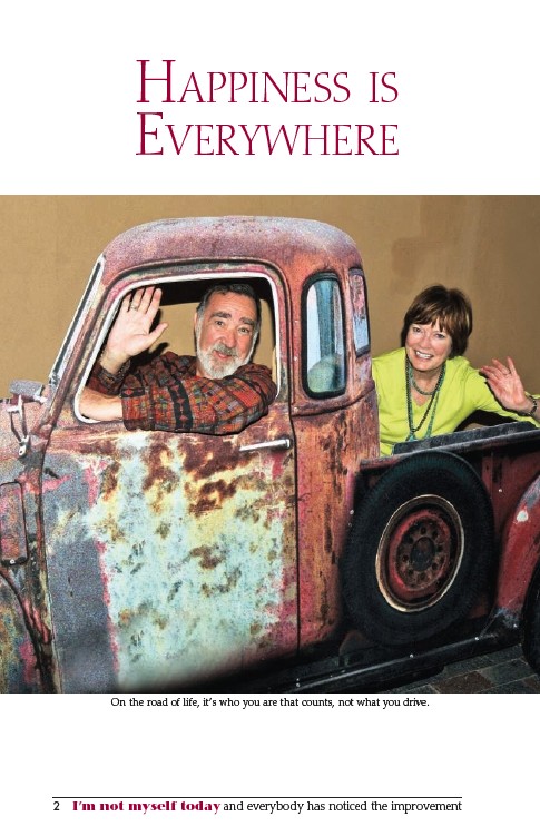 HAPPINESS IS EVERYWHERE On the road of life, it’s who you are that counts, not what you drive. 2 I’m not myself today and everybody has noticed the improvement