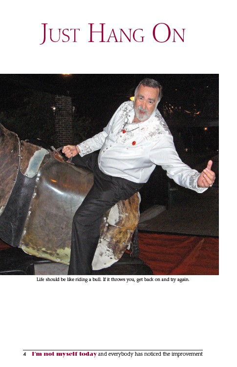 JUST HANG ON Life should be like riding a bull. If it throws you, get back on and try again. 4 I’m not myself today and everybody has noticed the improvement