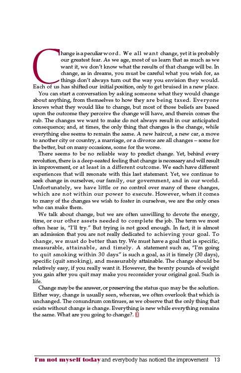 to many of the changes we wish to foster in ourselves, we are the only ones