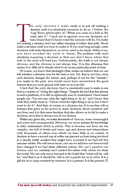 want to do it.” And that, of course, is a decision too. It is our free will as