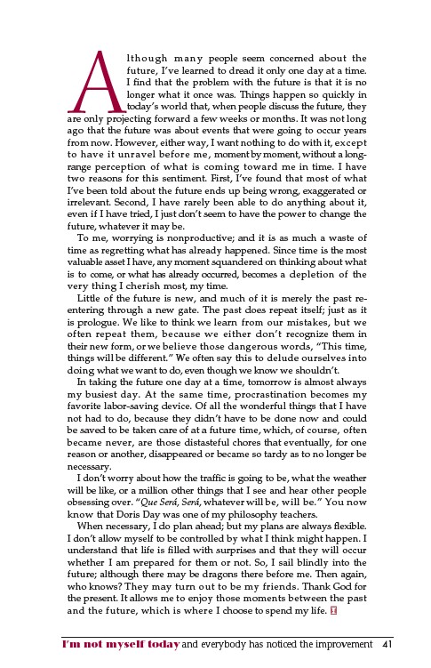 obsessing over. “Que Será, Será, whatever will be, will be.” You now