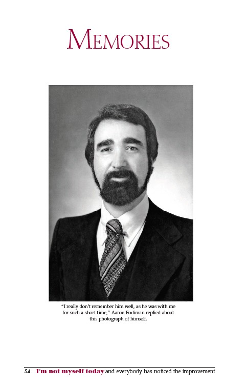MEMORIES “I really don’t remember him well, as he was with me for such a short time,” Aaron Fodiman replied about this photograph of himself. 54 I’m not myself today and everybody has noticed the improvement