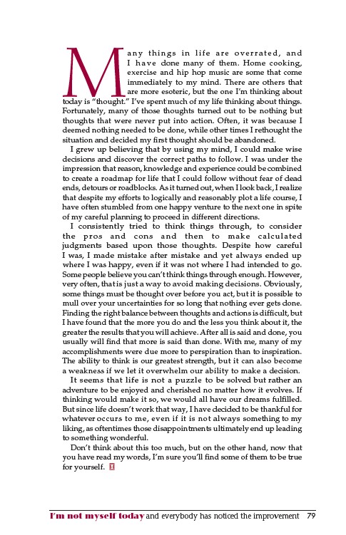 ends, detours or roadblocks. As it turned out, when I look back, I realize