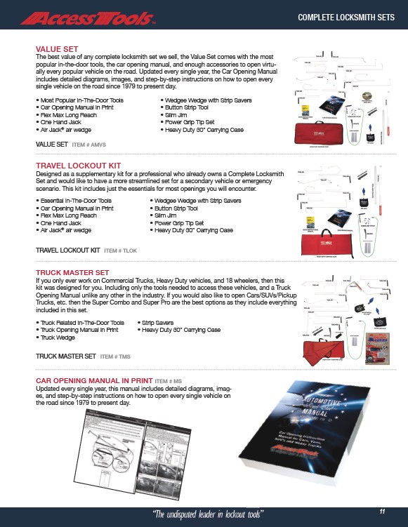 popular in-the-door tools, the car opening manual, and enough accessories to open virtually