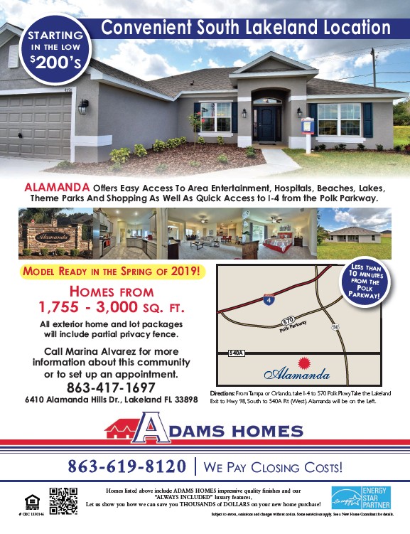 Homes listed above include ADAMS HOMES impressive quality finishes and our