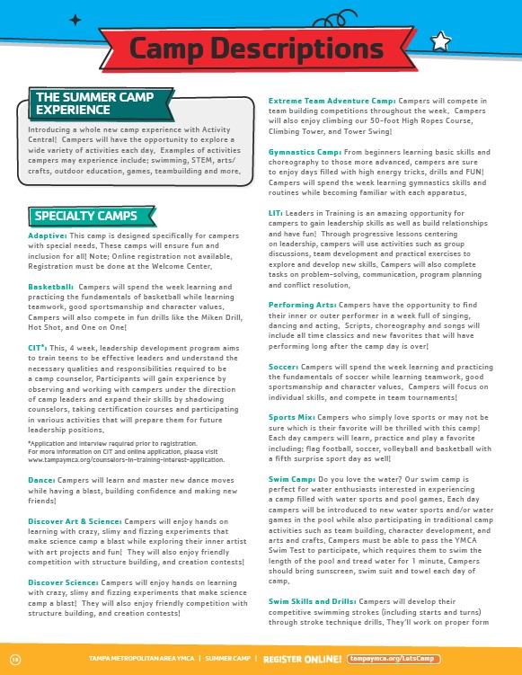 TAMPA METROPOLITAN AREA YMCA | SUMMER CAMP | tampaymca.18 org/LetsCamp