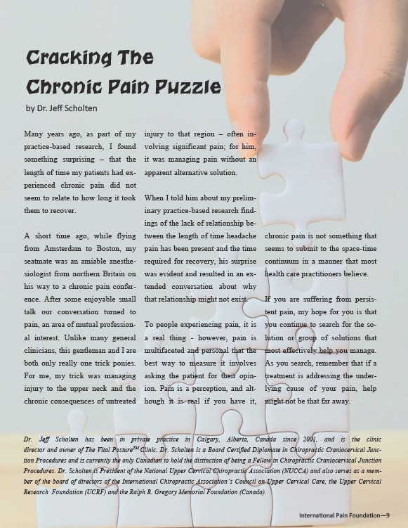 director and owner of The Vital PostureTM Clinic. Dr. Scholten is a Board Certified Diplomate in Chiropractic Craniocervical Junction