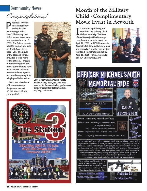 Community News Month of the Military Congratulations! Child - Complimentary Movie Event in Acworth | March 2019 | Real Hero Report I luncheon on March 12, Holloway and Quin Lyles were awarded for their outstanding performance anything but routine.
