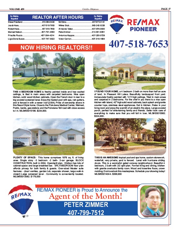 Ligia Done Suazo............................. 407-747-3022 Victor Carrion....................................407-319-1684