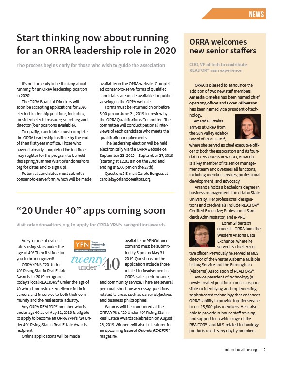 Visit orlandorealtors.org to apply for ORRA YPN’s recognition awards