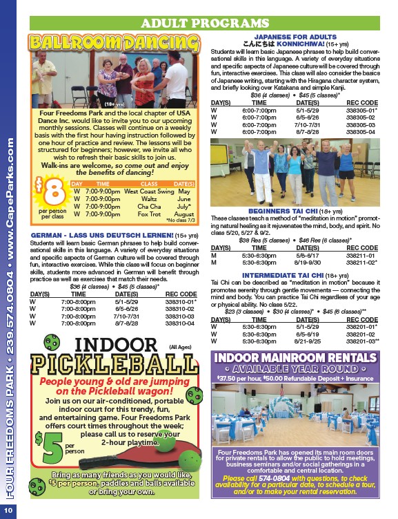 10 FOUR FREEDOMS PARK • 239.574.0804 • www.CapeParks.com